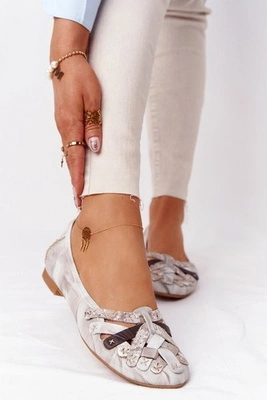 Damskie Skórzane Baleriny Maciejka 01930-86 Popielate
