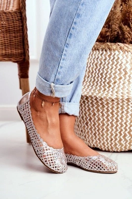 +1Baleriny Damskie Sergio Leone Beżowo Złote BL610