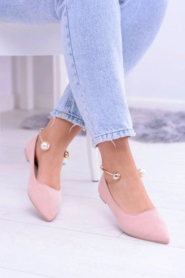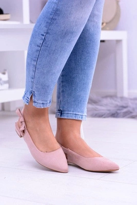 Lu Boo Różowe Zamszowe Balerinki w Szpic Cyrkonie Macron