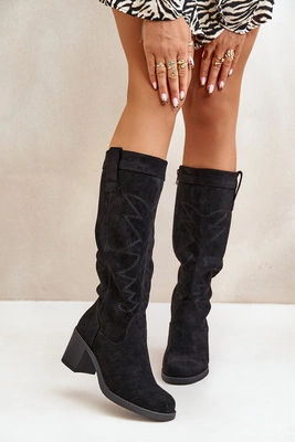 Zazoo 3427 Damskie Zamszowe Kozaki Kowbojki Czarne