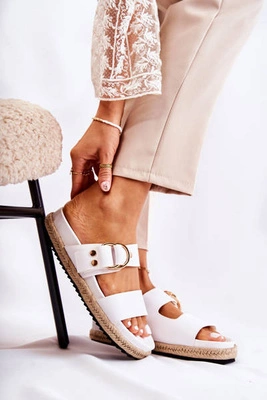 Skórzane Klapki Z Łańcuchem Białe Step By Step