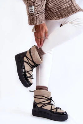 Damskie Modne Śniegowce Sznurowane Beżowo-Czarne Carrios