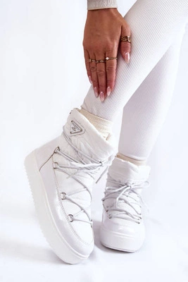 +6Damskie Modne Śniegowce Sznurowane Białe Carrios