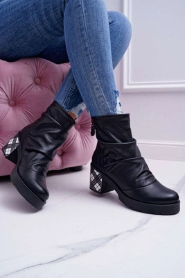 Botki Damskie Na Obcasie Z Dżetami Czarne Rhythmic