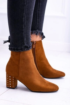 Ciepłe Damskie Botki Na Słupku Brązowe Jokasta