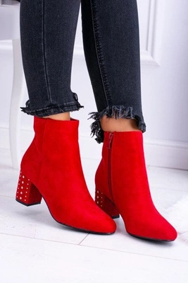 Ciepłe Damskie Botki Na Słupku Czerwone Jokasta