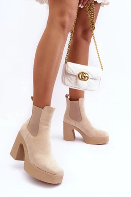 Zamszowe Botki Na Obcasie Beżowe Makeline