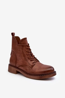 Klasyczne Damskie Botki Na Płaskim Obcasie Brązowe Ballisa