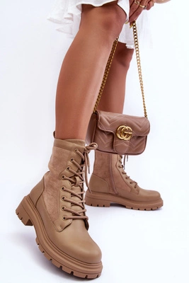 Damskie Ocieplane Botki Trapery Sznurowane Camel Halfway