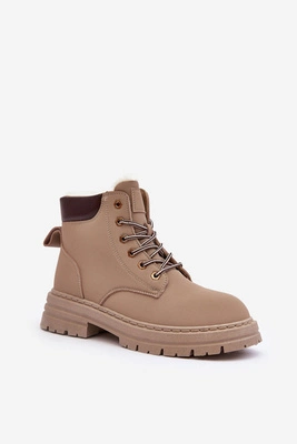 Ocieplane Botki Workery Na Płaskim Obcasie Beżowe Saranema