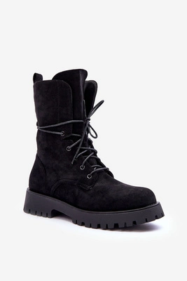 Zamszowe Botki Damskie Z Wiązaniem Czarne Lineanor