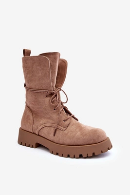 Zamszowe Botki Damskie Z Wiązaniem Beżowe Lineanor