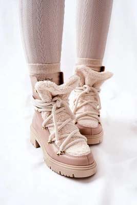 Botki Trapery Ocieplane Wiązane Beżowe Karley