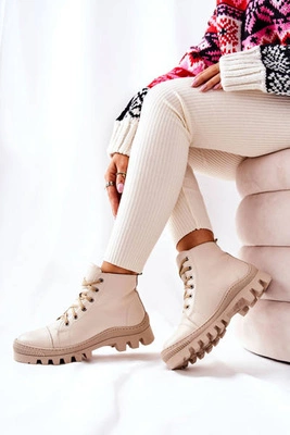 Skórzane Botki Workery Maciejka Beżowe 05312-04