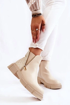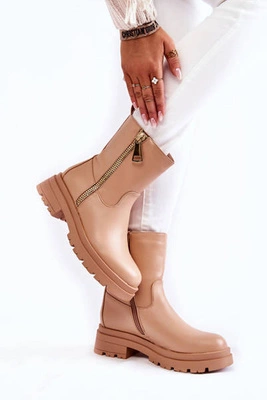 Damskie Modne Botki Ocieplane Beżowe Gerda