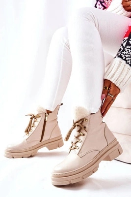 Skórzane Ocieplane Botki Z Futerkiem Beżowe Farley