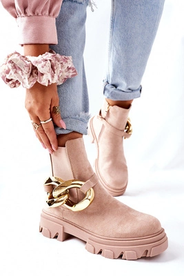 Zamszowe Damskie Botki Ocieplane Beżowe Janice