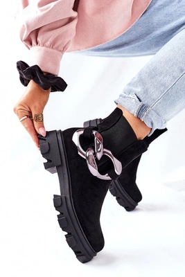 Botki Damskie Zamszowe Czarne Nicole 2674