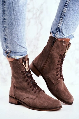 Botki Damskie Skórzane Nubuk Cappuccino Nicole 2593