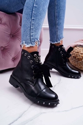 Damskie Botki Workery Big Star Skórzane Czarne EE274506