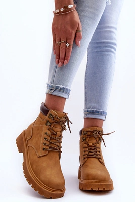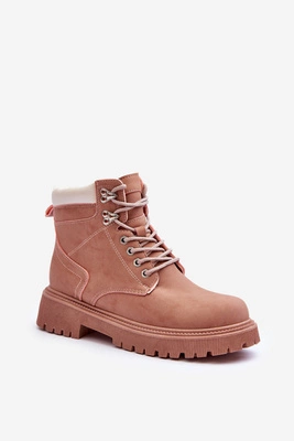 Zamszowe Botki Damskie Z Wiązaniem Beżowe Lineanor
