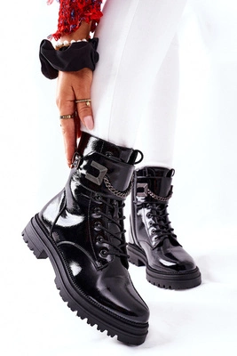 Botki Na Słupku Czarne Lakierowane Klamra Bramshall