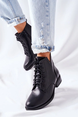 Skórzane Ocieplane Botki Na Obcasie Laura Messi Czarne 2202