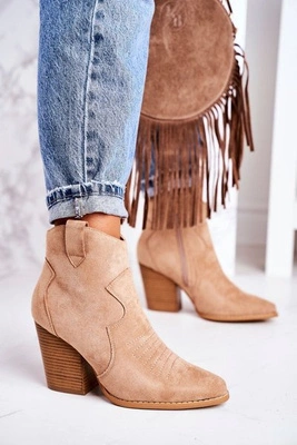 Damskie Kowbojskie Ocieplane Botki Na Słupku Beżowe Margaret