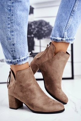 Botki Damskie Na Obcasie Skóra Nubuk Cappuccino Nicole 2580