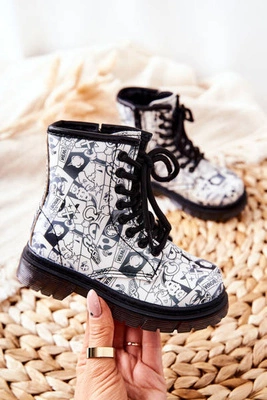 Dziecięce Botki Ocieplane Z Suwakiem Biało-Czarne Tiptop