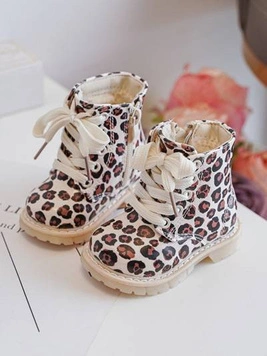Śniegowce Botki Dziecięce W Panterkę Na Platformie Ocieplane Futerkiem Brązowe Vilabria