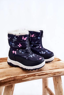 Dziecięce Botki Śniegowce Na Suwak Big Star KK374236 Granatowe