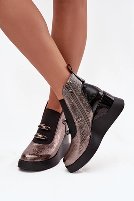 Lakierowane Botki Na Koturnie Ocieplane Vinceza 66703 Szare