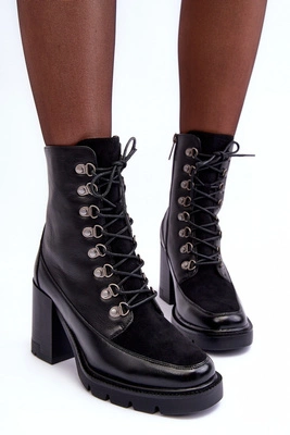 Masywne Sznurowane Botki Na Słupku Czarne Lathia