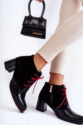 Zamszowe Botki Sznurowane Lewski Shoes 3244/G Czarne