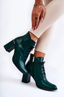 Damskie Ocieplane Botki Na Obcasie Zielone Abella