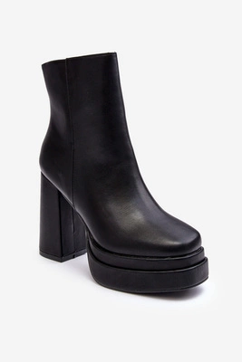 Skórzane Botki Damskie Na Masywnym Obcasie Czarne Fllavie