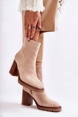 Eleganckie Zamszowe Botki Na Słupku Beżowe Ettany
