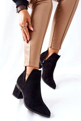 Damskie Zamszowe Botki Z Wycięciami Lewski Czarne 3074/B