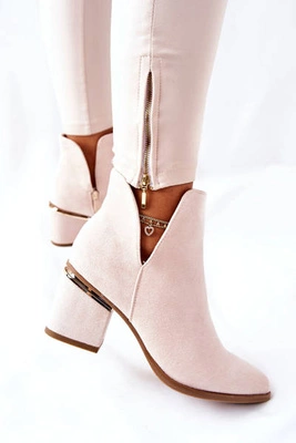Zamszowe Botki Na Słupku Lewski Shoes 3044 Beżowe