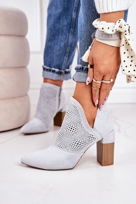 Ażurowe Botki Na Słupku Zamszowe Exquisite 1219 Koniak