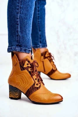 Botki Damskie Na Obcasie Z Nitami W Szpic RB23P Camel Snack