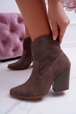 Botki Damskie Na Obcasie Skóra Zamsz Cappuccino Nicole 2433