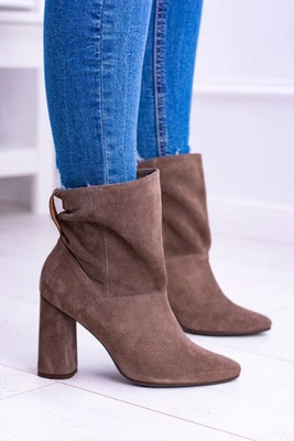 Eleganckie Zamszowe Botki na Słupku Laura Messi Khaki 1849