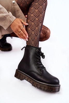 Skórzane Ocieplane Botki Glany Big Star KK274486 Czarne