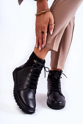 Skórzane Ocieplane Botki Sznurowane Czarne Ritta