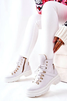 Botki Trapery Ocieplane Wiązane Beżowe Karley