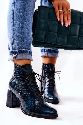 Skórzane Botki Wzór Aligatora Czarne Laorelia