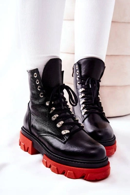 Skórzane Botki Workery Laura Messi Czarne 2209