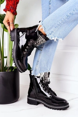 Botki Damskie Workery Czarne Lakierowane Valeria